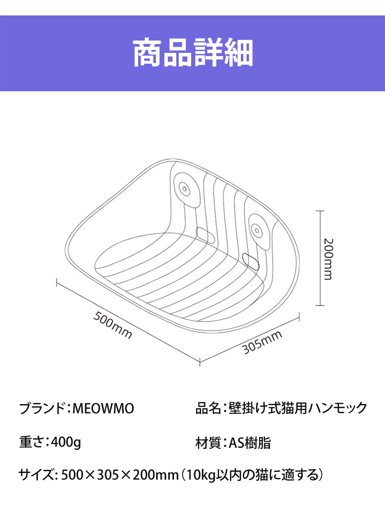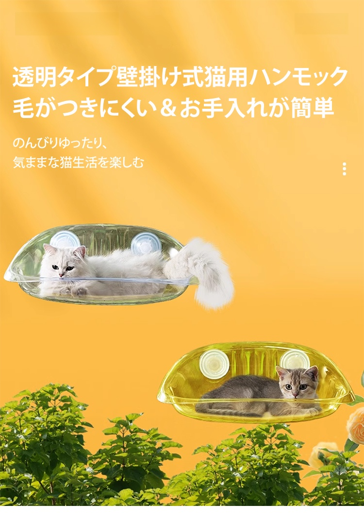 透明タイプ壁掛け式猫用ハンモック